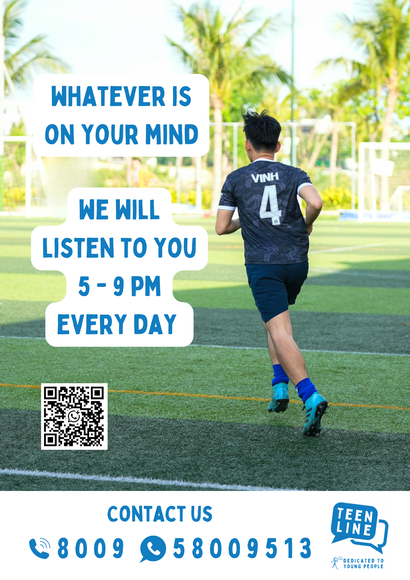 Teenline Listeners understand that it’s not easy to talk, and they can help you to feel more confident. Remember, if you can’t talk on the phone right now, you can start by sending a message on Whatsapp, 58009513